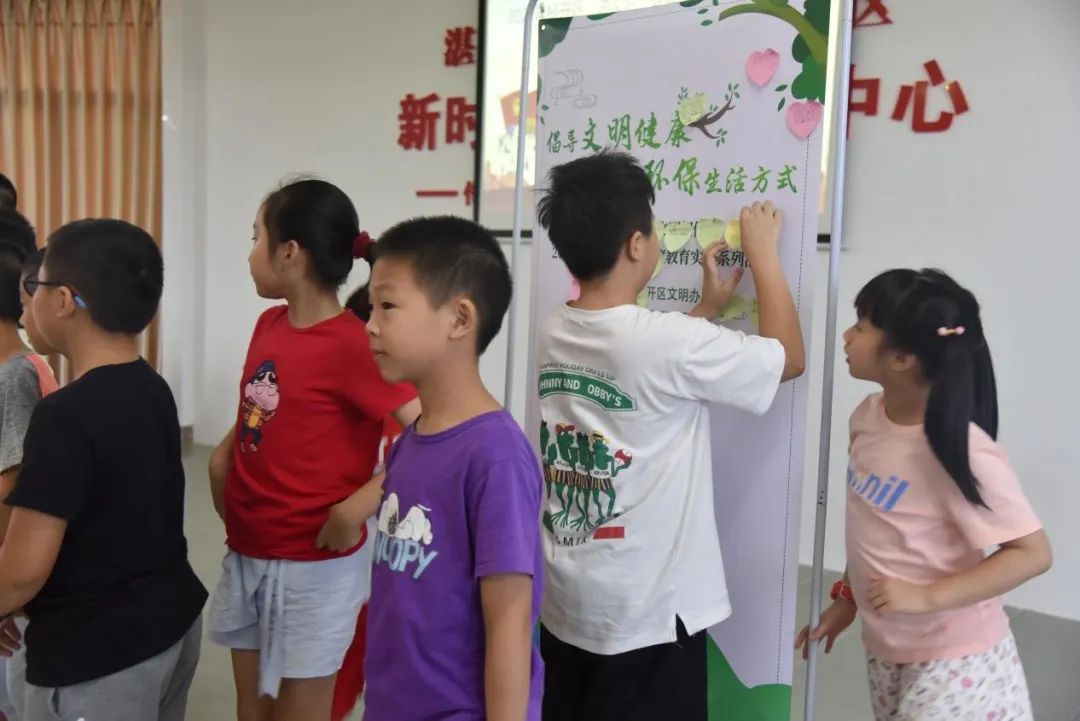 为弘扬中华传统美德,面向社区宣传生态文明思想,带动全民参与文明教育活动,人民社区举办 “讲文明、铸健康,守绿色、重环保”教育实践活动、在绿塘河湿地公园开展“巾帼心向党,争做河小青”志愿服务活动、在开发区一小周边开展“3.5”学雷锋精神展志愿风采活动,以志愿奉献精神、为民服务的实际行动为青少年做出示范,有效提高了青少年的文明健康意识,积极倡导绿色环保生活理念,为建设美丽湛江、美丽中国贡献青春力量。