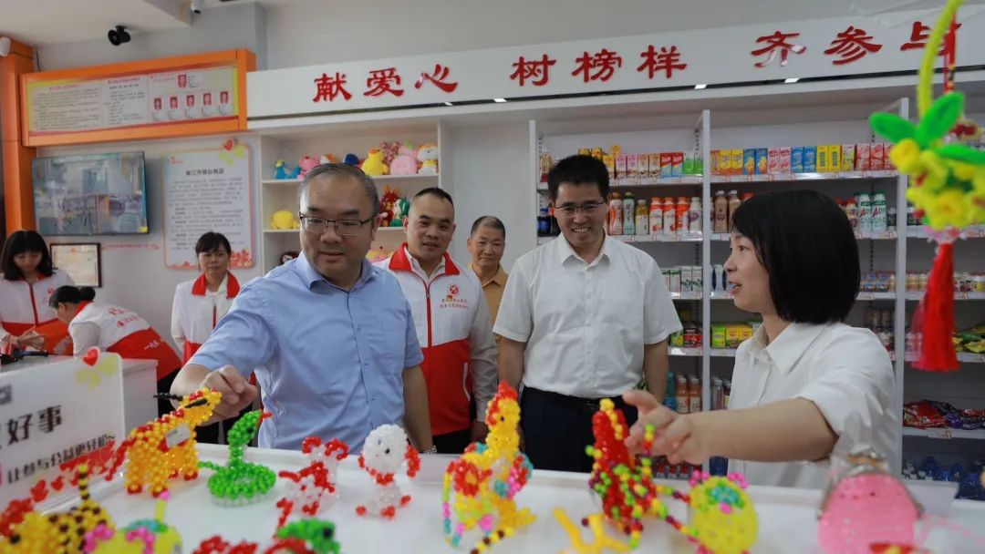 谭凌一行,在廉江市市委副书记李平军,共青团廉江市委书记黄水秀,廉江市残疾人联合会党组书记、理事长魏福迪的陪同下,首先来到廉江爱心商店。据悉,廉江市爱心商店是支持残疾人事业的公益爱心商店,是“助残+公益+服务”的新窗口,货架上摆放着残疾人手工艺品、本土企业捐赠的小家电产品和农特产品,营收利润定向用于残疾人事业。