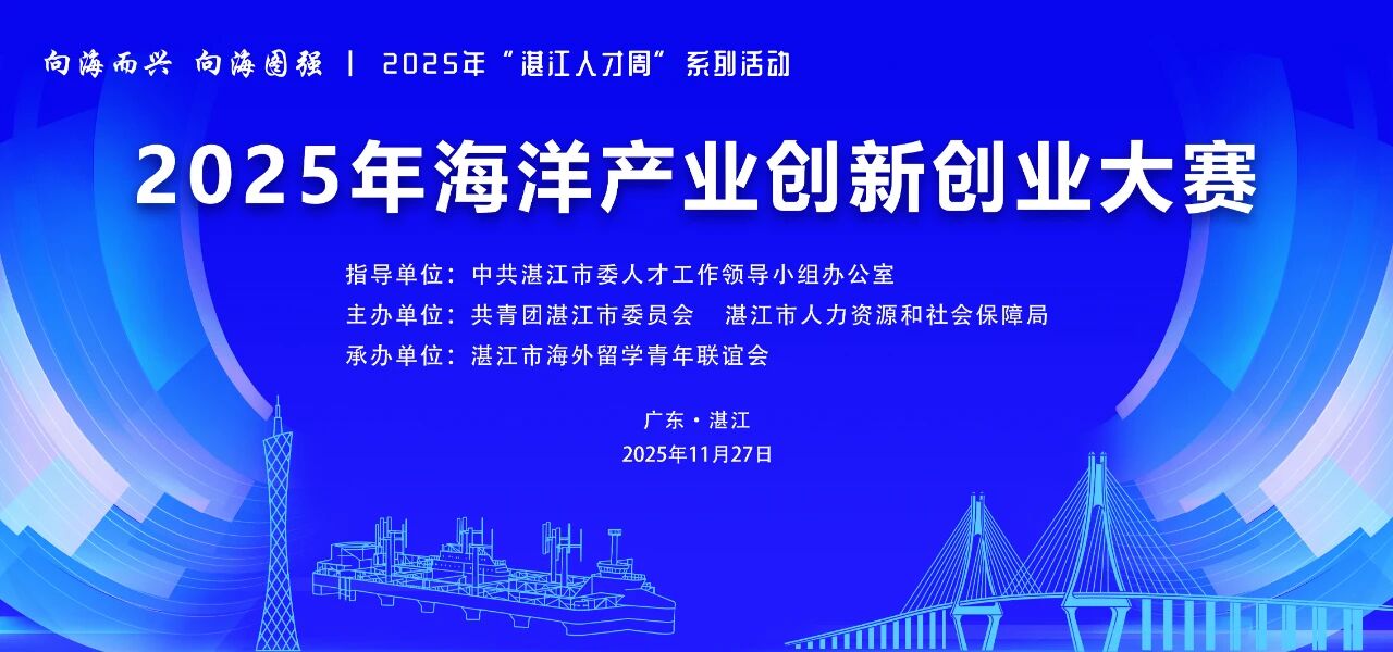 11月27日,“向海而兴·向海图强”2025年海洋产业创新创业大赛决赛在湛江成功举办。作为2025年“湛江人才周”系列活动的启动活动,大赛由市委人才工作领导小组办公室指导,团市委、市人社局联合主办,旨在深入贯彻落实习近平总书记关于人才工作和视察广东重要讲话精神,以“百万英才汇南粤”行动计划为抓手,集聚青年创新力量,培育新质生产力,助力湛江现代海洋经济高质量发展。