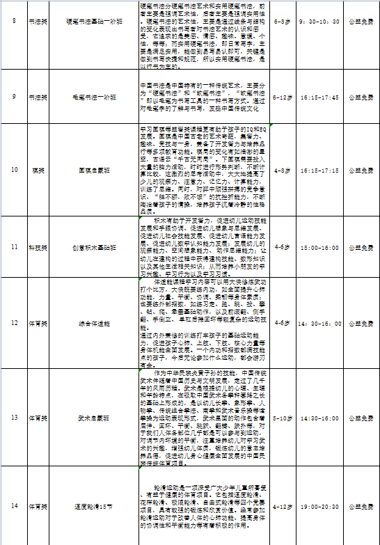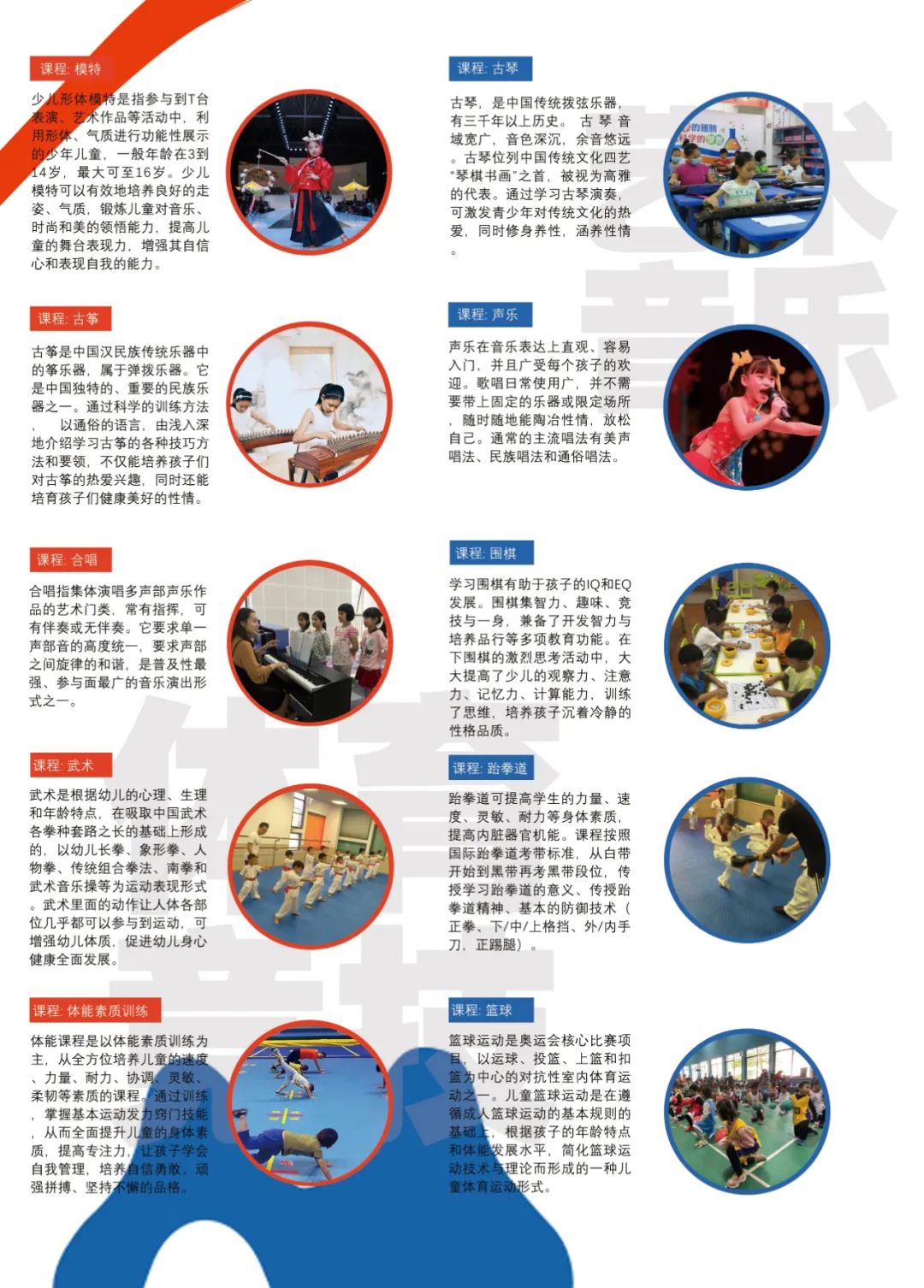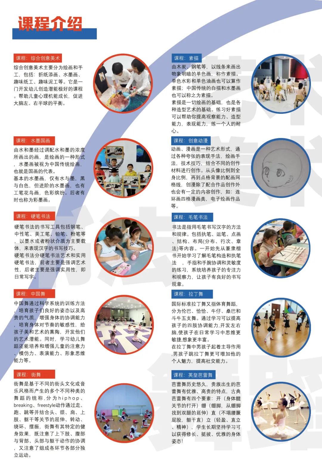 开设美术、舞蹈、乐器、语言艺术、书法、